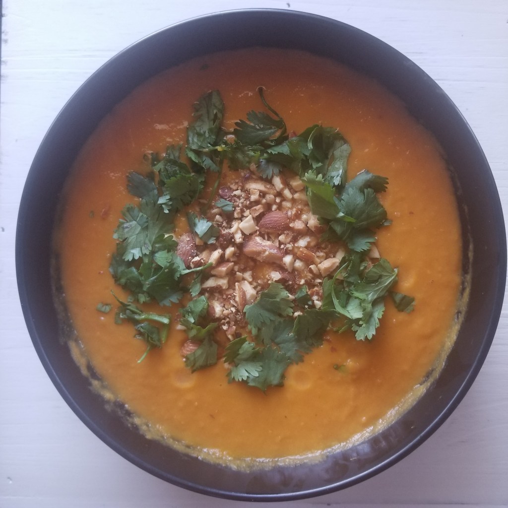 - Ladle the soup into bowls and top with minced cilantro, a squeeze of lime juice, and crushed almonds. This soup will keep in the fridge for up to a week and freezes well for 1 to 2 months.